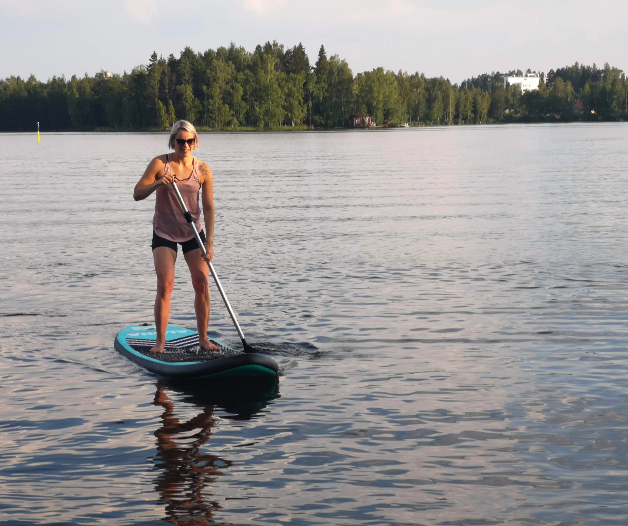 SUP-lautoja, jotka soveltuvat hyvin myös aloittelijalle. SUP-laudalla pääset näppärästi ihailemaan maisemia Rautaveden laineilta. Ota rennosti tai tee vaikka SUP-treeni laudan päällä. Kelluntaliivi kuuluu luonnollisesti vuokrahintaan!