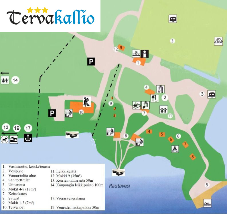 Tervakallion leirintäalue sijaitsee Rautaveden rannalla Sastamalassa. Leirintäalueemme tarjoaa monipuolisia majoitusvaihtoehtoja, olit sitten matkalla asuntoautolla, teltalla tai kaipaat mökkimajoitusta. Alueelta löydät myös kolme saunaa, nuotiopaikat ja keittiötilat, suositun uimarannan ja kesäiset kahvilat. Meiltä ei ole pitkä matka keskustaan ja lenkkipolutkin löytyvät vierestä.