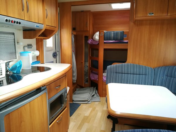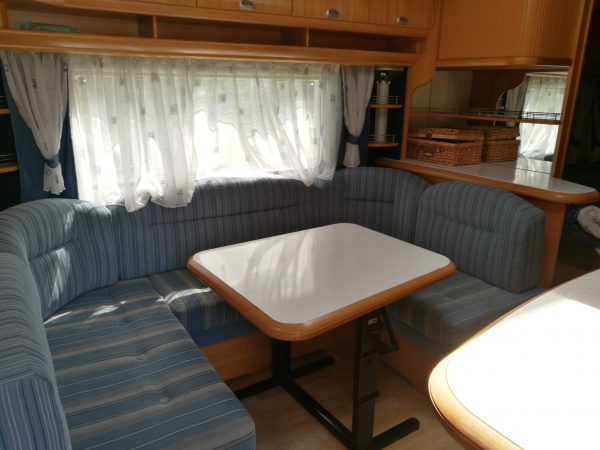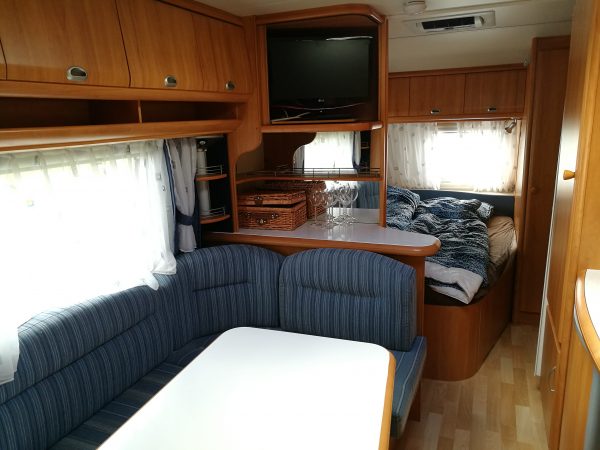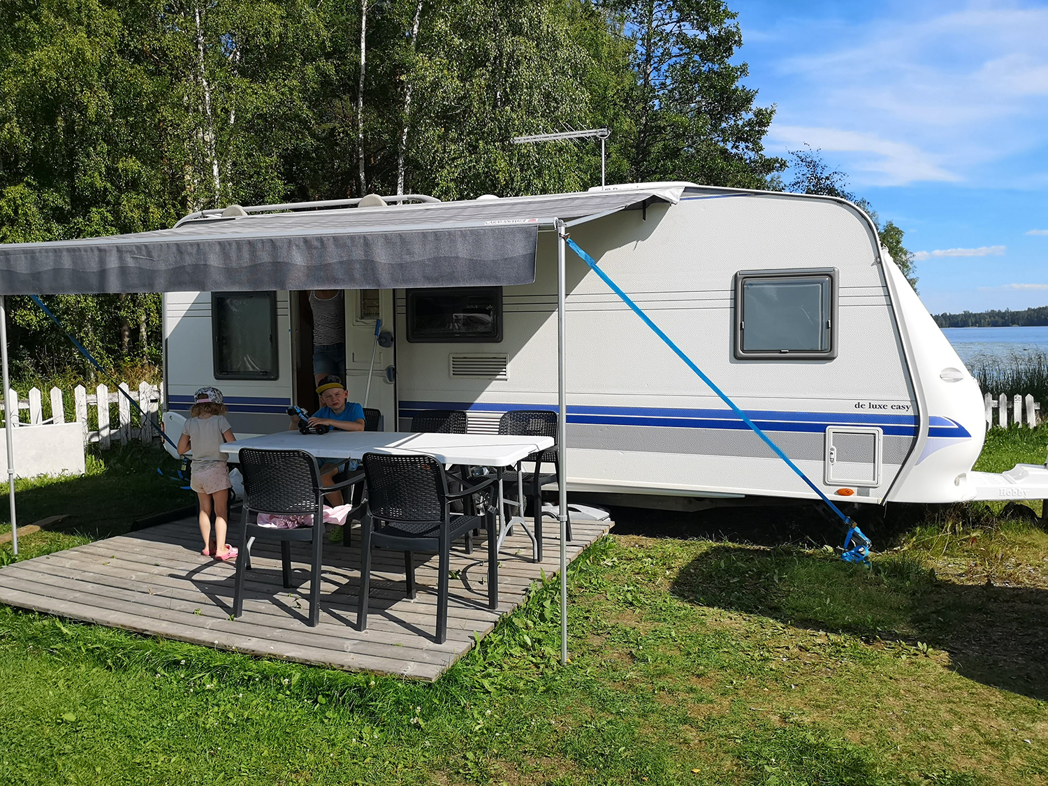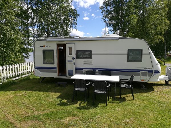 Majoitu asuntovaunussa upealla rantapaikalla! Vaunuun majoittuu mukavasti 4+2 henkeä. Autossa on ilmastointi, oma WC, vesipiste ja normaali sähkövarustus. Viihdykkeeksi löytyy LCD-televisio. Ulkopuolella on etukatos ja ulkokalusteet rentoutumista varten. Mukavuuksiin kuuluvat myös mikroaaltouuni, kahvinkeitin, jääkaappi ja pakkaslokero.