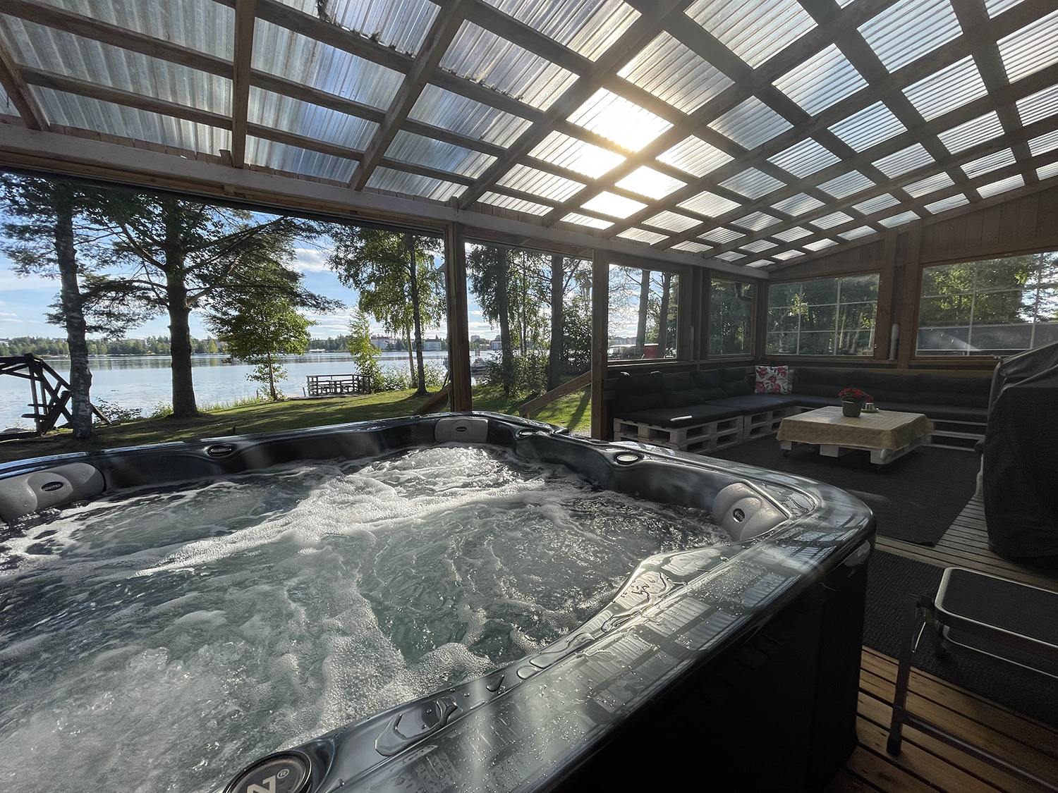 - Vuokrattavissa kaasugrilli sekä ulkoporeallas